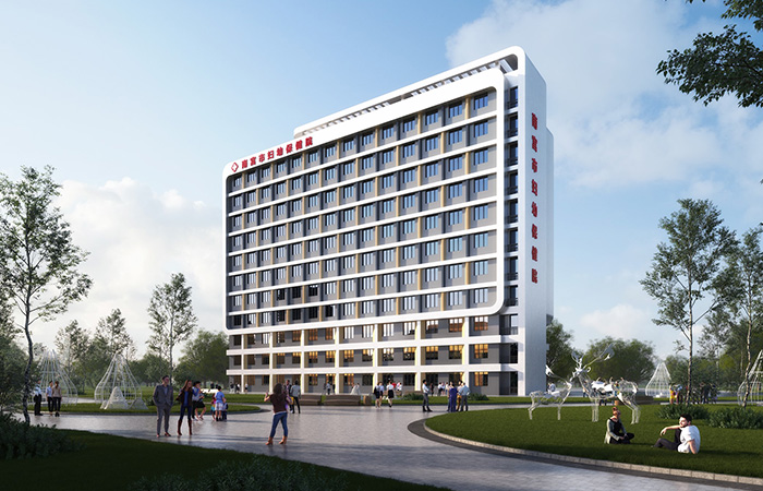 規(guī)劃設(shè)計在現(xiàn)狀建筑西側(cè)植入新建建筑體量,新建建筑與原有建筑形成中軸對稱的總體布局。在病房樓四周,設(shè)置大面積綠地景觀,營造出綠色共享的景觀區(qū)域,與自然為鄰,享受舒適環(huán)境。